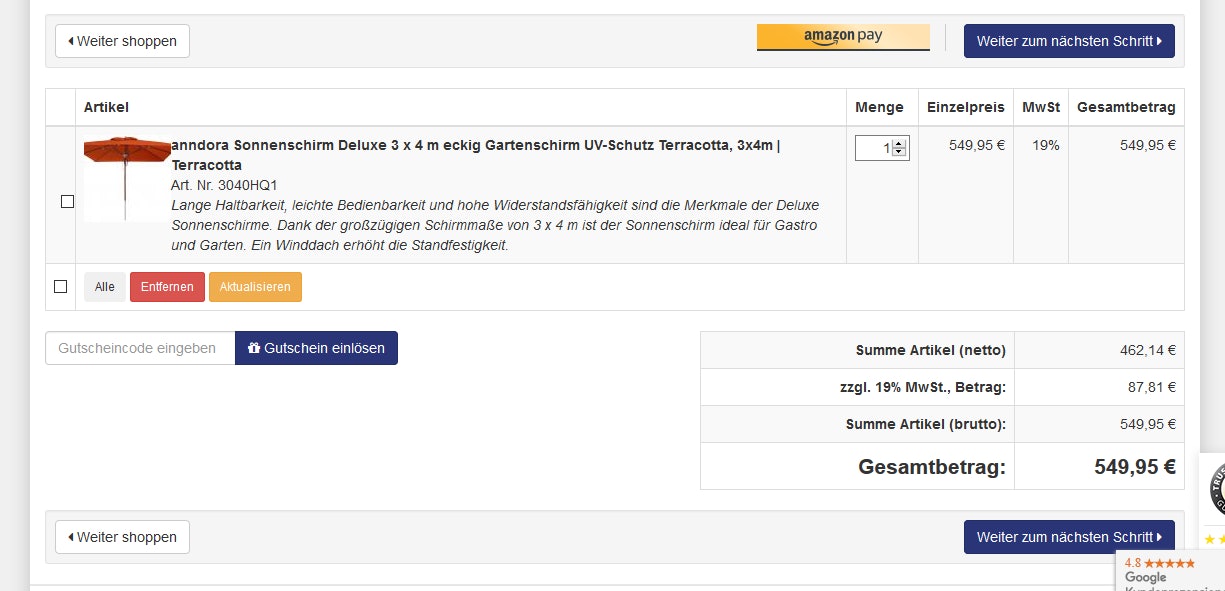 Danach kannst du auch direkt deine komplette Bestellung zum Abschluss überprüfen. Bevor du die Bestellung abschickst solltest du aber unbedingt noch einmal überprüfen, ob du wirklich deinen anndora Gutschein eingelöst hast, um dir tolle Rabatte zu sichern.