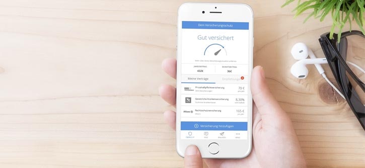 Das Portal berät dich mit Versicherungen, welche gut auf deine Lebensumstände passen. Darüber hinaus prüft es bereits bestehende Verträge und gleicht diese mit anderen vergleichbaren Versicherungen ab. In diesem Vergleich liegt ein hohes Sparpotenzial, weil du zu teure Verträge durch günstigere ersetzen kannst, ohne an Versicherungsschutz einzubüßen. Darüber hinaus kannst du all deine Versicherungen auf einen Blick verwalten, bekommst Hilfe bei Kündigungen oder einem Wechsel und sogar im Schadenfall.