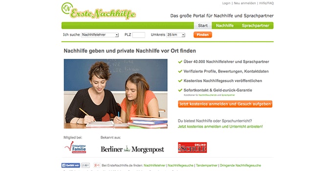 Durch mehrere Jahre Branchenerfahrung und tausende erfolgreicher Vermittlungen konnte ErsteNachhilfe online eine innovative Plattform entwickeln, auf man schnell passende Lehrkräfte und Sprachpartner für die Erreichung der eigenen Lernziele findet. Doch auch als Anbieter von Unterricht bist du hier richtig und neue Jobs als Nachhilfe- oder Sprachlehrer findest du im ErsteNachhilfe Shop auch. Privater Nachhilfe- und Sprachunterricht, besonders Einzelunterricht, ist die effektivste und günstigste Art des Unterrichts. Also nichts wie los, es warten über 100.000 Anbieter, Suchende und Sprachpartner auf dich.