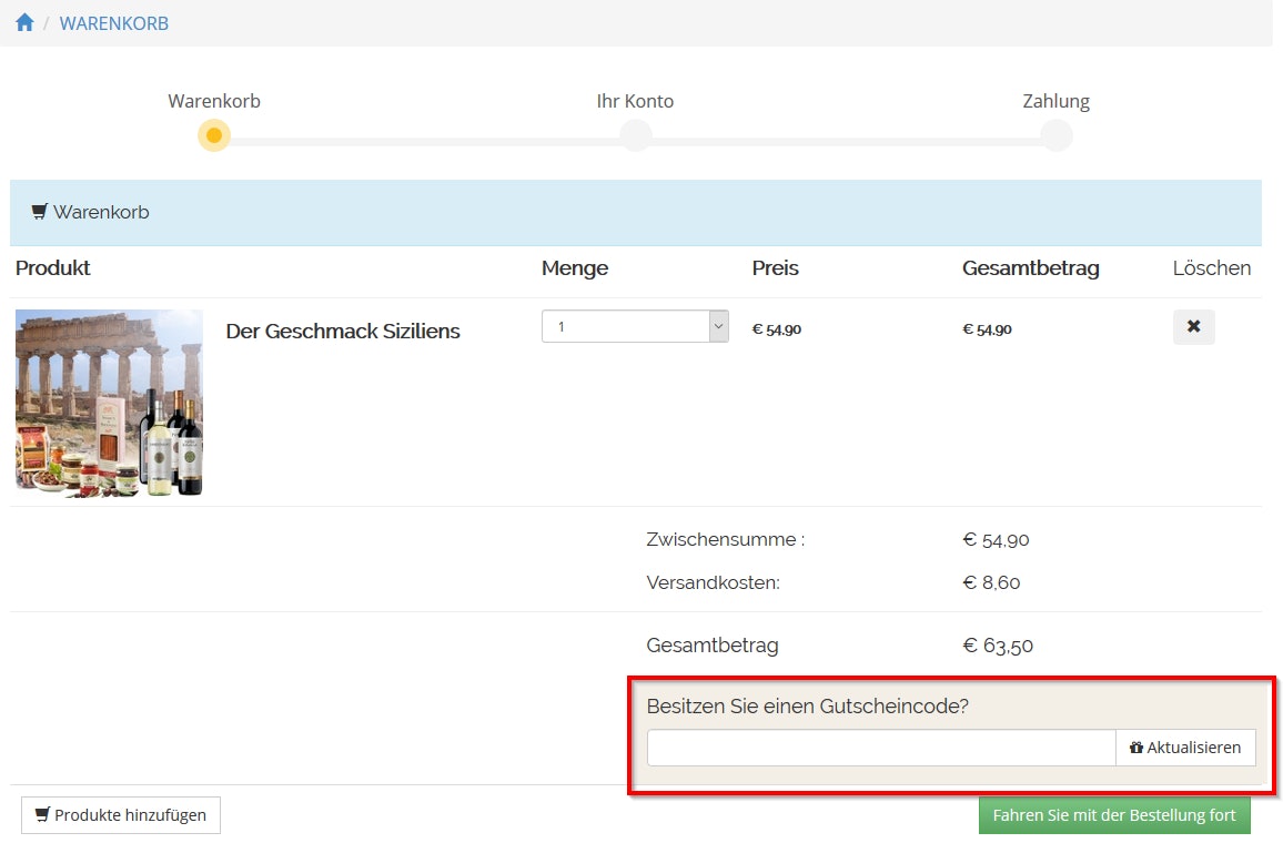 - "Besitzen Sie einen Gutscheincode?" lautete die für dich nun wichtige Frage. Du findest sie unter deiner Bestellübersicht im Warenkorb.