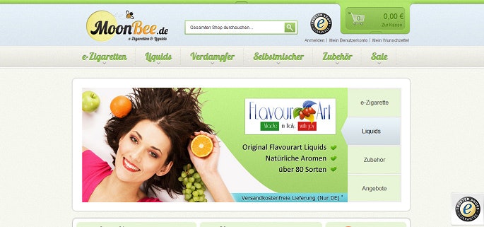 e-Zigaretten, Liquids und Cartomizer kannst du jetzt günstig im MoonBee Online Shop bestellen. In diesem Onlineshop erhältst du qualitativ hochwertige Marken E-Zigaretten in großer Auswahl. Natürlich befindet sich auch das passende Zubehör wie Liquids in verschiedenen Geschmacksrichtungen oder Verdampferköpfe im Angebot. Nur mit einem MoonBee Gutschein wird deine Bestellung im e-Zigaretten Shop noch günstiger. Einfach einen kostenlosen und akuellen MoonBee Gutscheincode im November 2025 einlösen und bares Geld sparen.