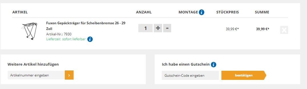 - Ziehe jetzt direkt deinen Radwelt Shop Spargutschein aus der Tasche und übertrage den darauf vermerkten Aktionscode in das zugehörige Feld auf der rechten Seite des Warenkorbs.