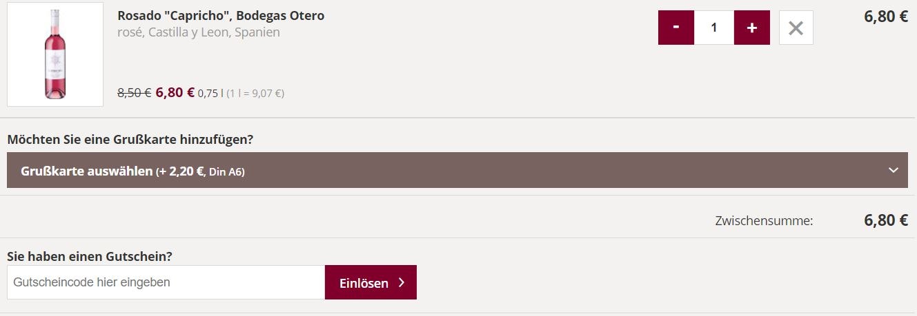 Vergewissere dich auch, dass deine Bestellung all die Konditionen erfüllt, die auf deinem Rindchen Coupon angegeben sind. Gut möglich, dass du dich nämlich nur dann für die Prozente qualifizierst, wenn du zum Beispiel eine Mindestanzahl an Flaschen deines Lieblingsweins nach Hause bestellst.