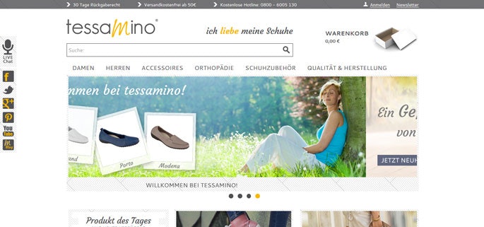 tessamino ist ein Onlineshop für bequeme Schuhe, der vor etwa 25 Jahren gegründet wurde. Der tessamino Onlineshop bietet euch bequeme Schuhe, Accessoires und weiteres Zubehör. Die Produktpalette umfasst dabei Marken wie Natural Feet, die euch dabei helfen, stressfrei durchs Leben zu gehen, als würdet ihr auf Wolken schweben. tessamino blickt auf eine lange und erfolgreiche Unternehmensgeschichte zurück. So wundert es nicht, dass tessamino Europas größter Verarbeiter von echtem Hirschleder ist. Kauft die bequemen Schuhe von tessamino und eure Füße werden es euch danken.