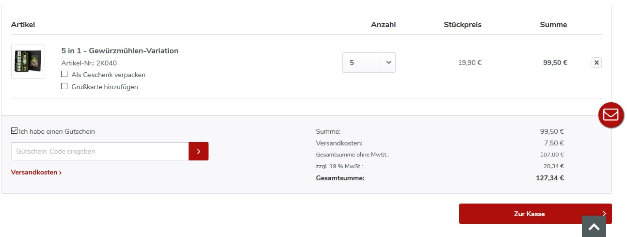 Du kannst außerdem ein Logo und dein Textwunsch direkt hochladen. Bist du zufrieden mit deiner Bestellung, kannst du sie im Warenkorb überprüfen – hier hast du auch die Möglichkeit, einen Gutscheincode einzulösen und zu sparen. Bist du zufrieden, klickst du auf „Zur Kasse“ – nun kannst du entweder als Neukunde oder gast bestellen und dich in dein bereits vorhandenes Kundenkonto einloggen.