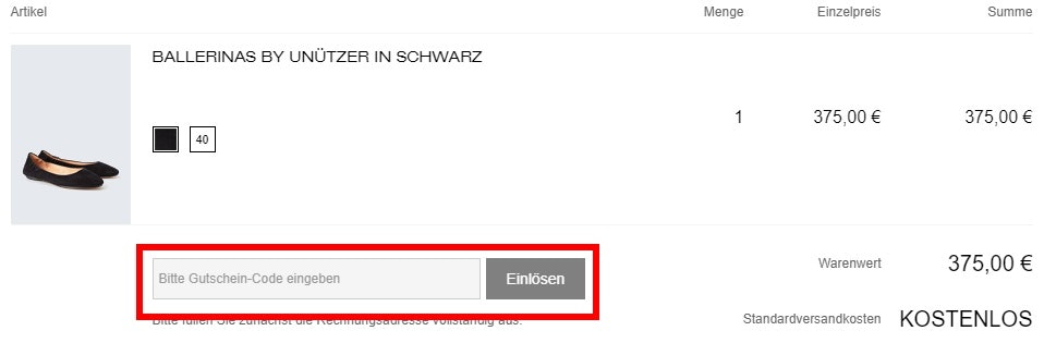 - Im Bestellschritt „Ihre Daten/ Ihr Gutschein“ dein windsor Gutscheincode eingeben und mit Klick auf „Einlösen“ bestätigen.