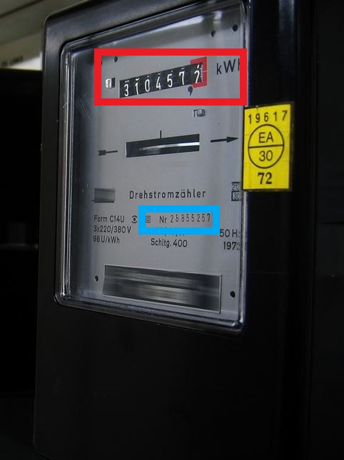 Außerdem brauchst du die Zählernummer, also die ID deines Zählers. Das ist ein mehrstelliger Code, der auch auf deinen letzten Stromrechnungen angegeben ist (blau markiert im Bild).